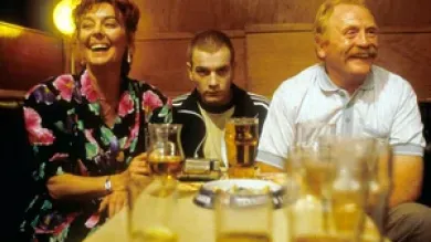 Первая часть серии, «На игле» (1996), была создана режиссером Дэнни Бойлом по сценарию Джона Ходжа на основе одноименного романа Ирвина Уэлша. Создатели не стали снимать прямолинейную социальную драму о наркотиках и выбрали гораздо более дерзкий путь: фильм соединил черный юмор, яркий монтаж, внутренние монологи, музыкальную энергию и жесткий реализм. Такой подход сделал историю о молодых маргиналах из Эдинбурга одновременно шокирующей, смешной и болезненно точной. Картина быстро стала культовой, а образы Рентона, Кочерыжки, Кайфолома и Бегби прочно вошли в поп-культуру.